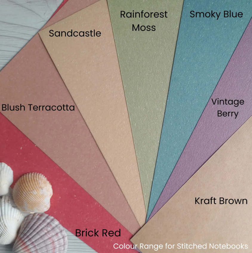 The covers are recycled card and will each have their own character and slight variation which is to be expected of recycled card. Inside each notebook are lined/ruled pages. Paper is white and from sustainable sources.