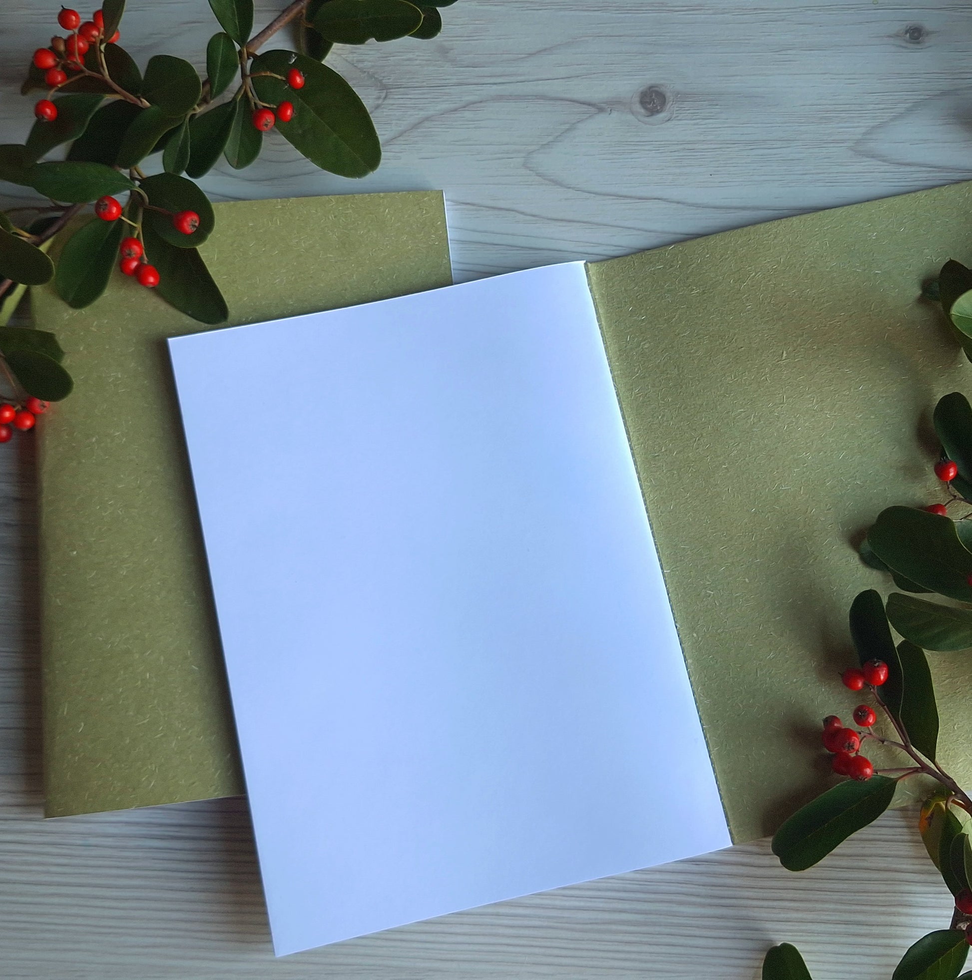 Rainforest Moss Notebook with recycled cover and stitched spine - A5, A6, A7 Size. These notebooks are handmade with a stitched spine on the recycled cover. This mossy green colour is striking and earthy, with a slightly rough and natural feel in the hand. The covers are plain, and can have your own doodles, drawings, stamps or artwork applied to them. Because they are hand cut and made with love, a little variation may occur. They each have 60 pages (30 leaves).