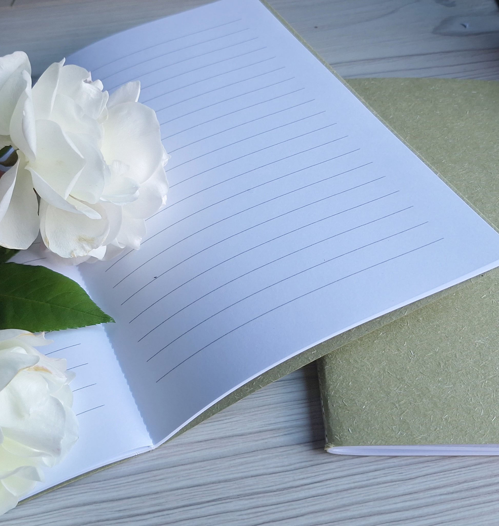 The covers are recycled card and will each have their own character and slight variation which is to be expected of recycled card. Inside each notebook is your choice of printed or plain page type. Paper is white and from sustainable sources.