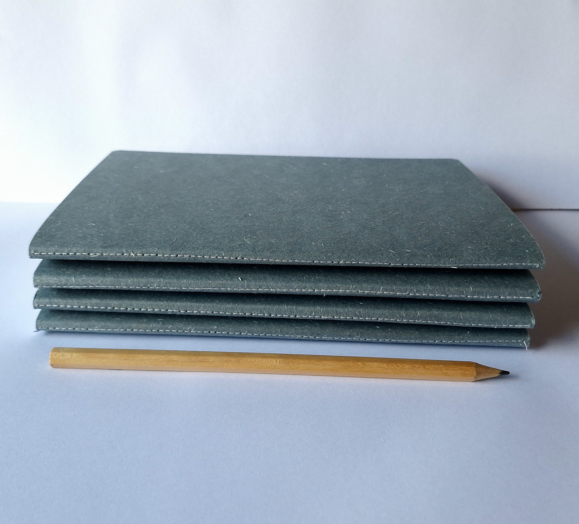 Smoky Blue Notebook with recycled cover and stitched spine - A5, A6, A7 Size. These notebooks are handmade with a stitched spine on the recycled cover. This dusty blue colour is rich and earthy, with a slightly rough and natural feel in the hand. The covers are plain, and can have your own doodles, drawings, stamps or artwork applied to them. Because they are hand cut and made with love, a little variation may occur. They each have 60 pages (30 leaves).