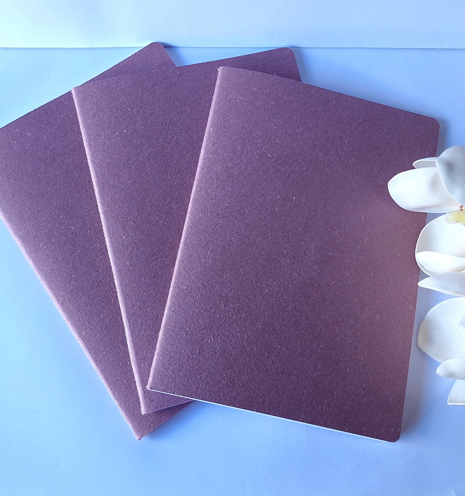 The covers are recycled card and will each have their own character and slight variation which is to be expected of recycled card. Inside each notebook is your choice of printed or plain page type. Paper is white and from sustainable sources.
